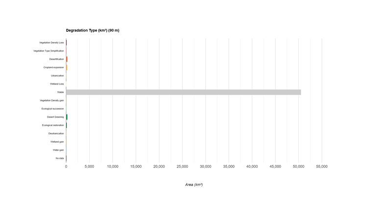 Figure 9. Land degradation and improvement types by area in Al Muthanna Governorate, 2000–2020. (Full Resolution: Land degradation type chart.png )