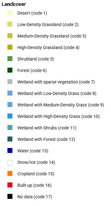 Raster map of land cover in Iraq for the year 2020 derived from the GLCLU v2 dataset. Provides the most recent snapshot of national land-cover conditions and is used in degradation and change assessments. (Legend included).