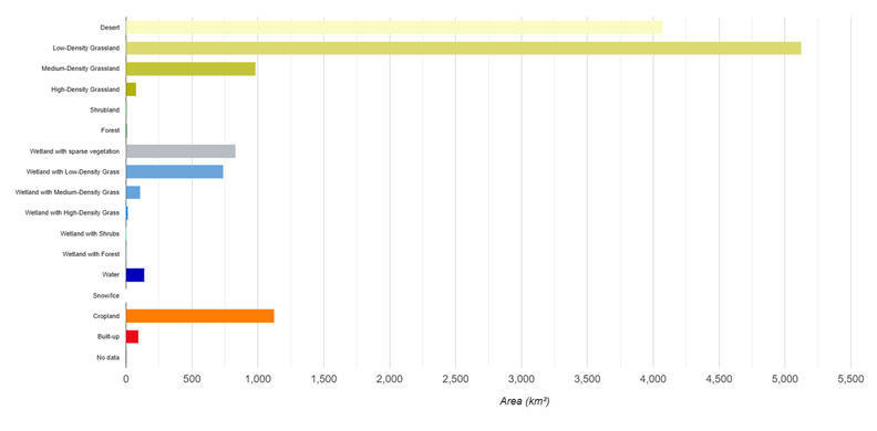 Figure 4. Land cover composition of ThiQar Governorate in 2020 (area in km² by class). Full Resolution: (LC 2020 chart.png)
