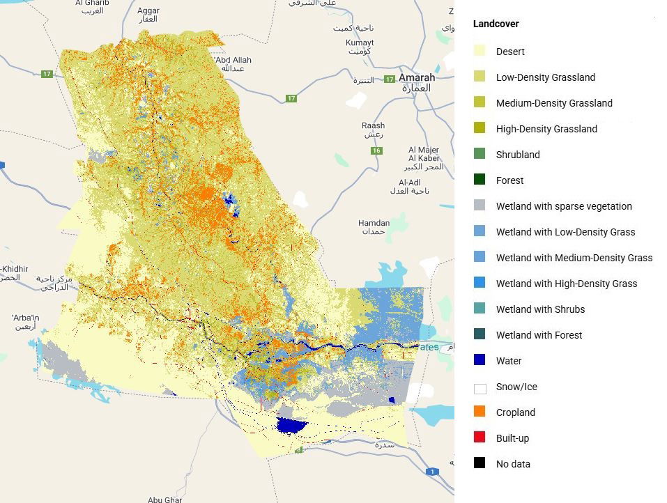 Figure 3. Land cover map of ThiQar Governorate in 2020 (GLCLU v2, Full Resolution: LC 2020 map.JPG).