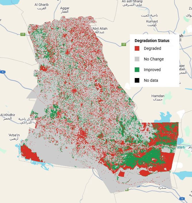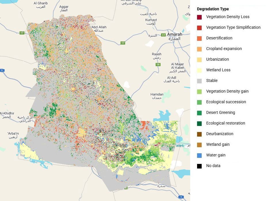 Figure 8. Land degradation and improvement type map in ThiQar Governorate, 2000–2020. Full Resolution: Land Degradation type map.JPG